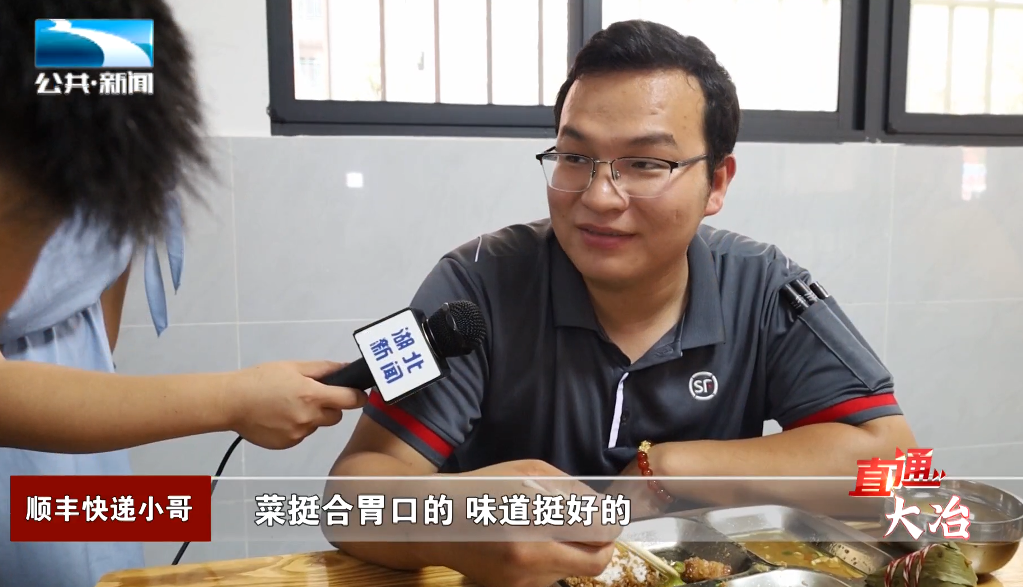顺丰快递小哥:“刚好路过这里,吃得饱,菜挺合胃口的,味道挺好的。”