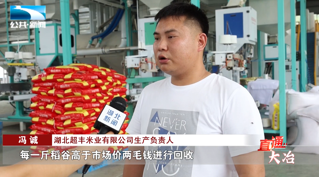 湖北超丰米业有限公司生产负责人 冯诚:“每一斤稻谷高于市场价两毛钱一斤进行回收,有效地保证了农民的利益。”