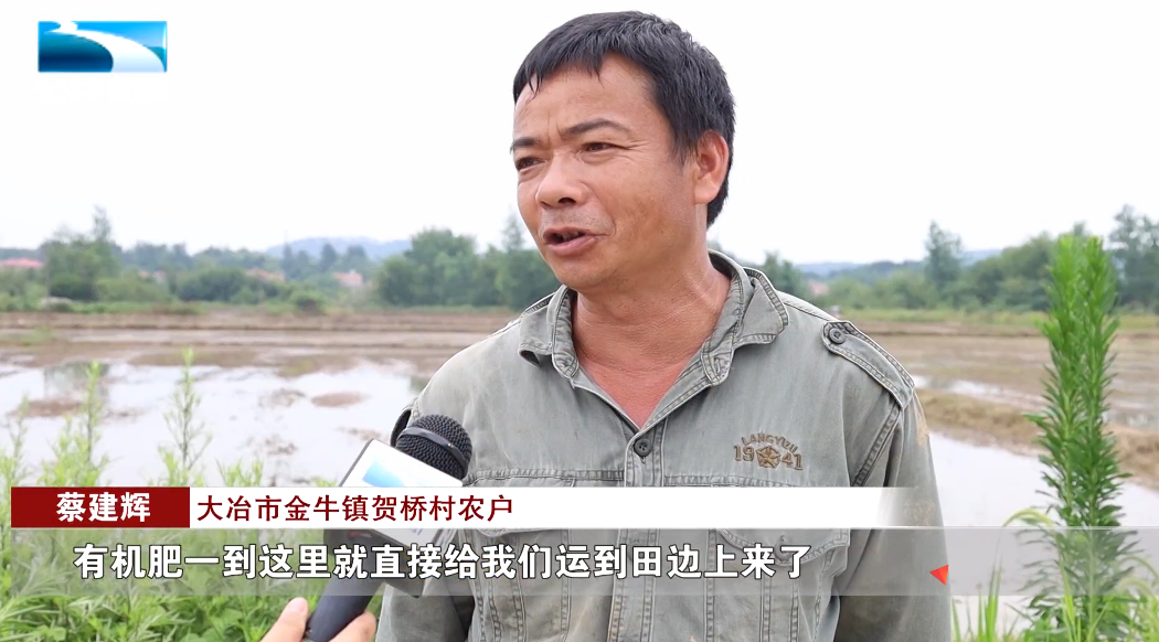 大冶市金牛镇贺桥村农户 蔡建辉:“有机肥一到这里,就直接给我们运到田边上来了,收购的时候他直接发车过来装,我们就是收割机收的,直接装过去了。”