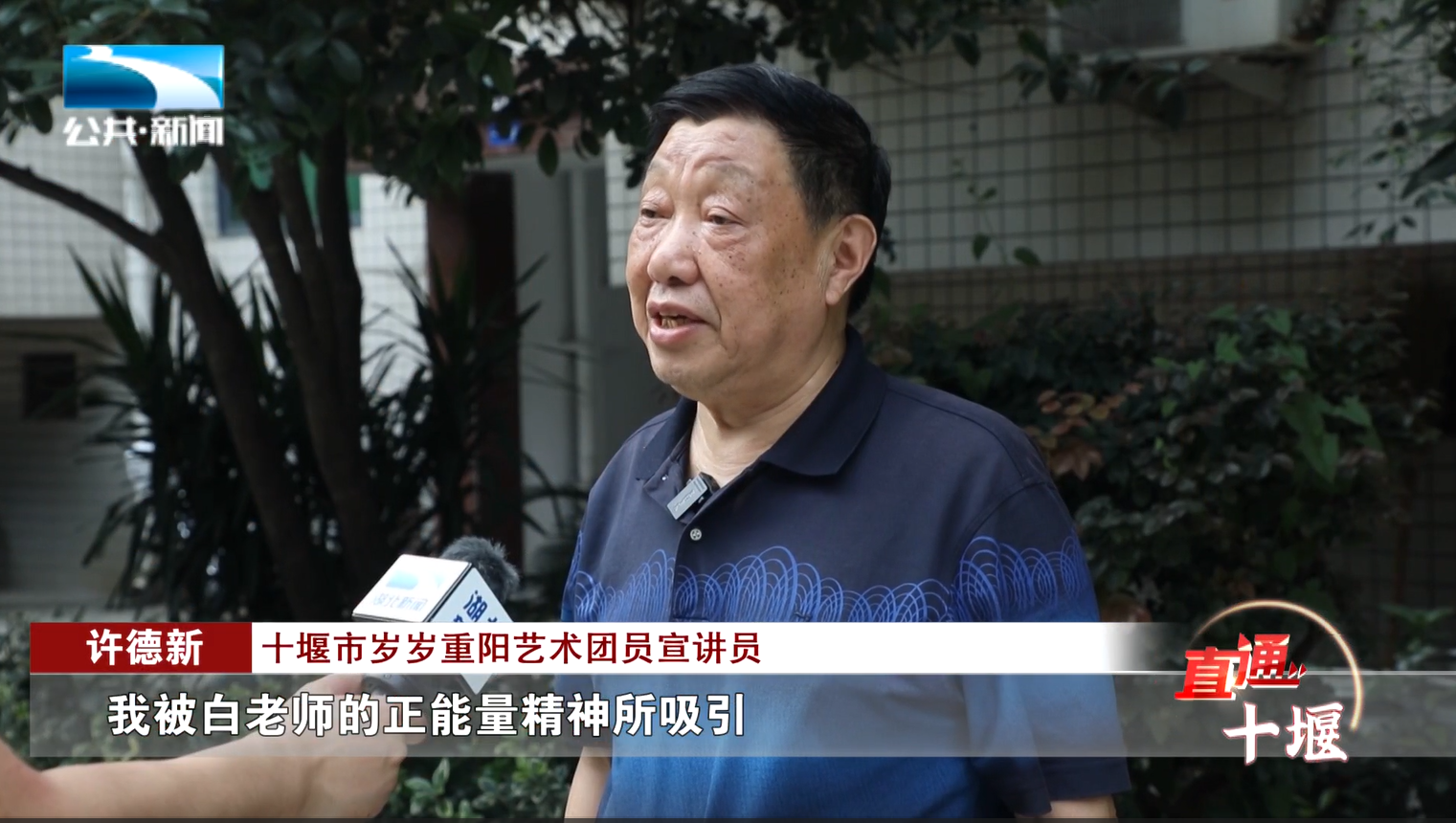 十堰市岁岁重阳艺术团员宣讲员 许德新:“我被白老师的正能量精神所吸引,被他的实际行动所感染。我们积极参加,也受到了鼓励和教育。”