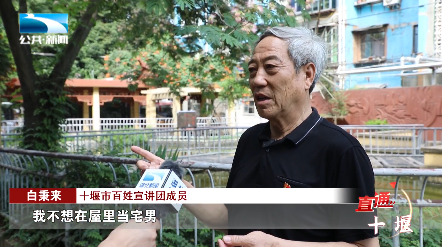十堰市百姓宣讲团成员 白秉来:“我不想在屋里当宅男,我要走出去。一是活得充实,二是活得洒脱,三是我活得有意义。为人民多做点事,为党多做点事,这是我的想法,也是我的职责,更重要的也是我的爱好。”