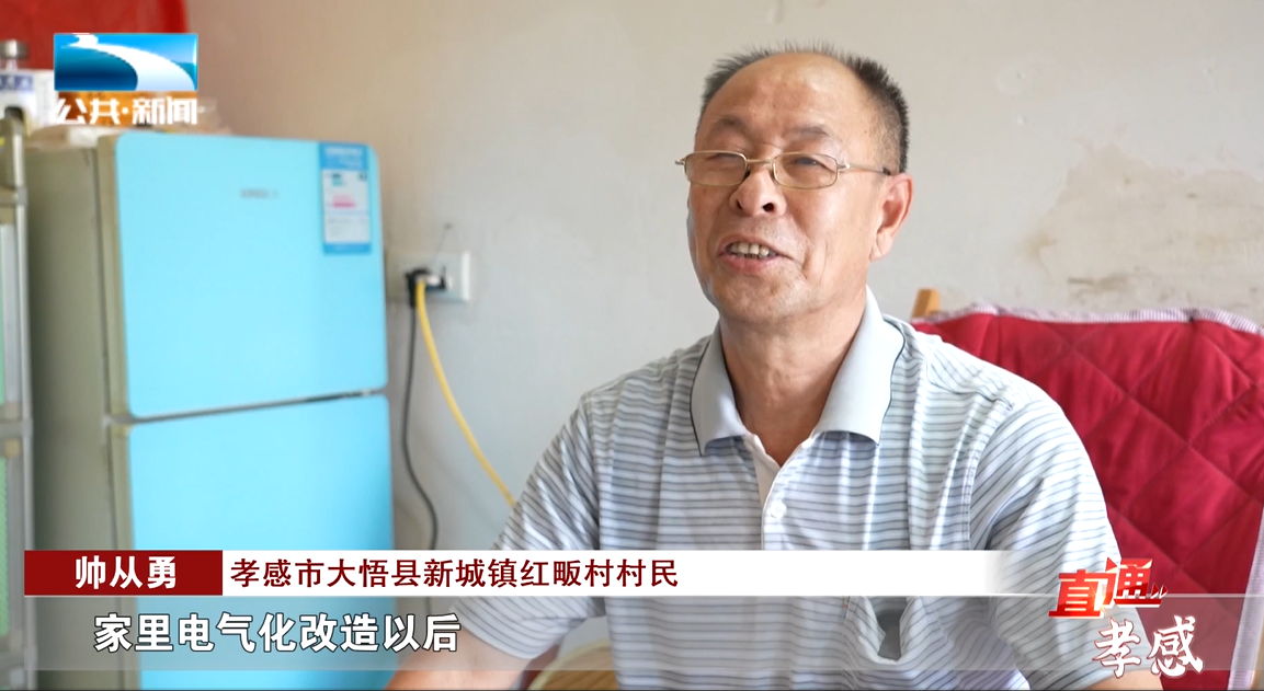 孝感市大悟县新城镇红畈村村民 帅从勇:“家里电气化改造以后,使用电饭煲、电磁炉做饭更方便快捷,空调、电扇、冰箱也都配齐了,炎热的夏天也能够舒舒服服地过。”