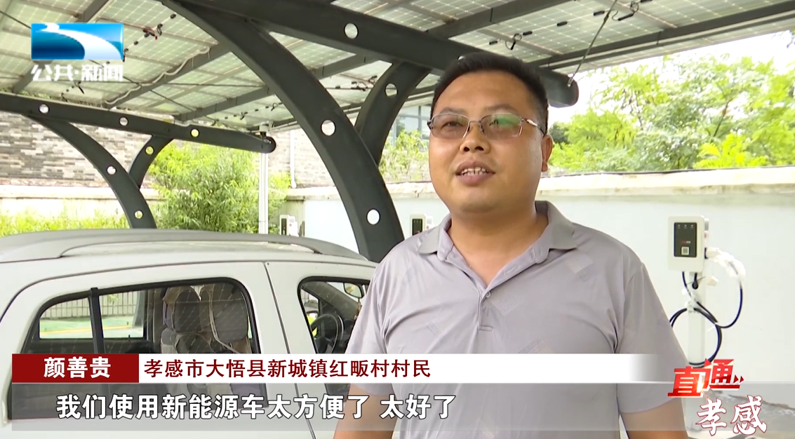 孝感市大悟县新城镇红畈村村民 颜善贵:“充电站都建到我们村门口了,我们使用新能源车太方便了,太好了。”