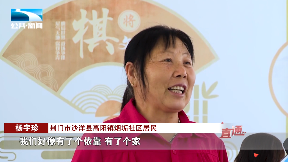荆门市沙洋县高阳镇烟垢社区居民 杨宇珍:“给我们搞的这个老年大学,我们好像有了个依靠,有了个家。在这里玩得挺好,挺开心的。”