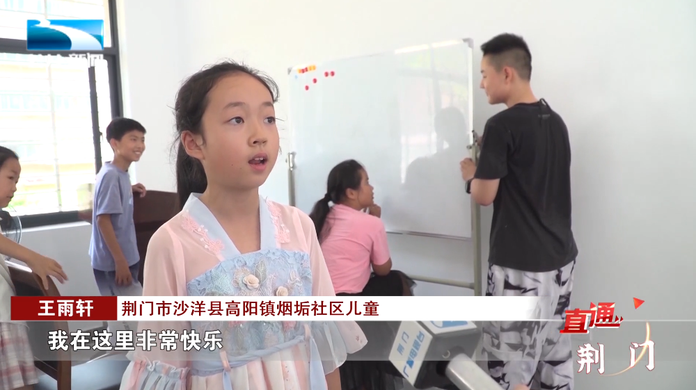 荆门市沙洋县高阳镇烟垢社区儿童 王雨轩:“我们刚才在玩你画我猜。我在这里非常快乐,最让我开心的,我在这里交到了许多不同年龄段的好朋友。这里的老师还教会了我怎么做手工。”