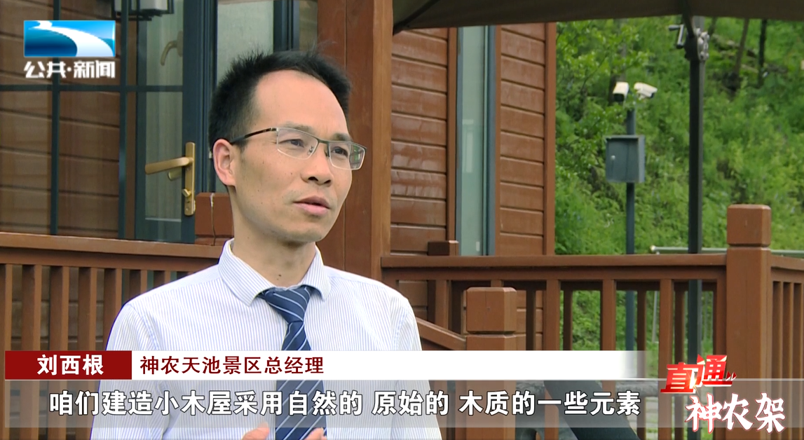 神农天池景区总经理 刘西根:“因为神农天池景区围绕在森林之中,咱们建造小木屋采用自然的、原始的、木质的一些元素,采用了大落地窗,让你住在房间里面可以看到通透的视野,看到原始的森林,呼吸到森林的味道。”