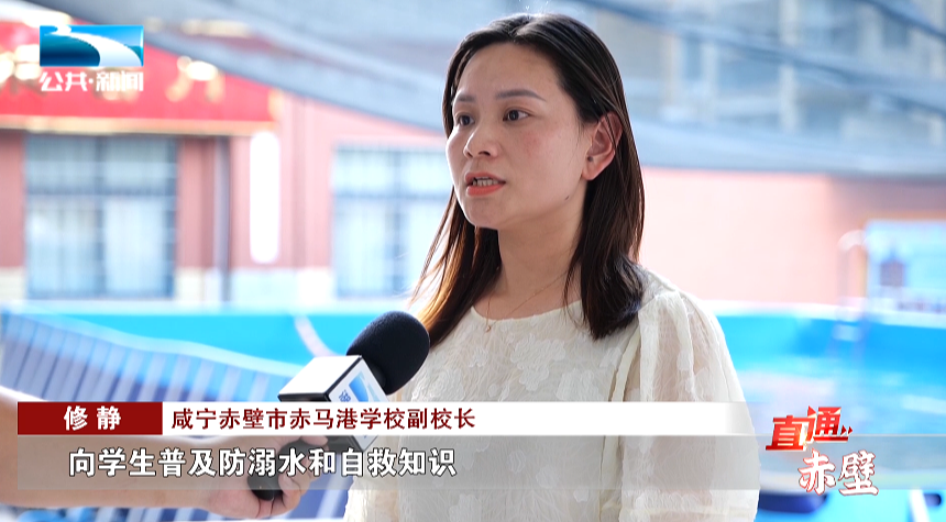 咸宁赤壁市赤马港学校副校长 修静:“我们学校启用了拼装的游泳池,为学生开展游泳技能培训,向学生普及防溺水和自救知识,做到让学生们既能开心地游泳,更能安全游泳。”