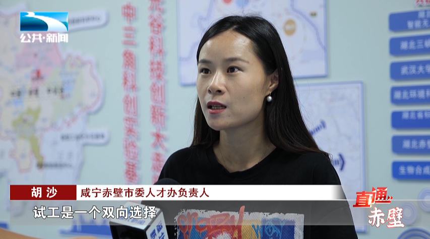 咸宁赤壁市委人才办负责人 胡沙:“试工是一个双向选择,我们把这些好的平台 好的资源展示出来,然后我们的人才亲身来到我们试工的岗位,根据他自己所学 所长进行亲身体验,体验了之后一个是提升他自己的一个技能,第二个对他未来的一个自主就业的方向,无论是选择试工的岗位,还是选择出去再就业的一个岗位,我们都是秉承大力支持的态度。”