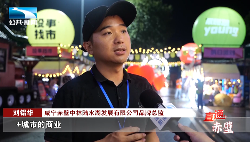 咸宁赤壁中林陆水湖发展有限公司品牌总监 刘铝华:“我们依托于旅游+的模式,+城区的文化,+赤壁的文化,+城市的商业,然后形成文商旅的一个夜经济聚集区。”