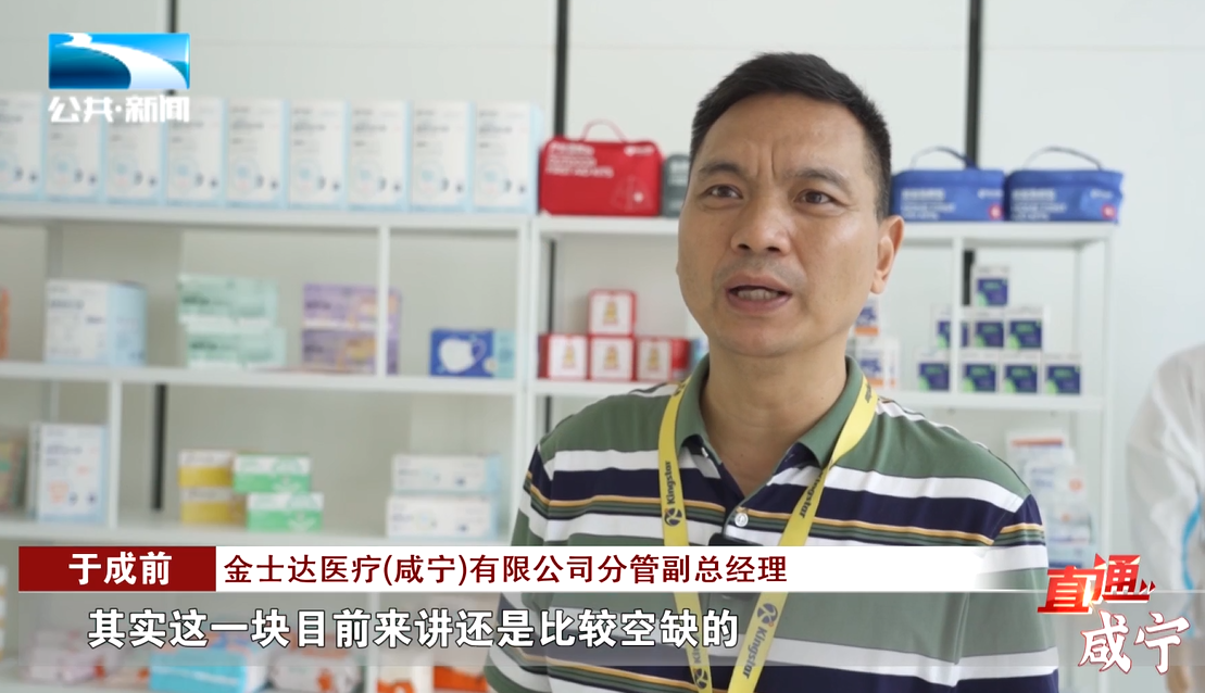 金士达医疗(咸宁)有限公司分管副总经理 于成前:“提供这种定制化的这些产品,适应不同类型的专业的护理的这些需求,但目前来讲,我们的老年人的用品占比差不多是10%,我们希望在五年达到30%。”
