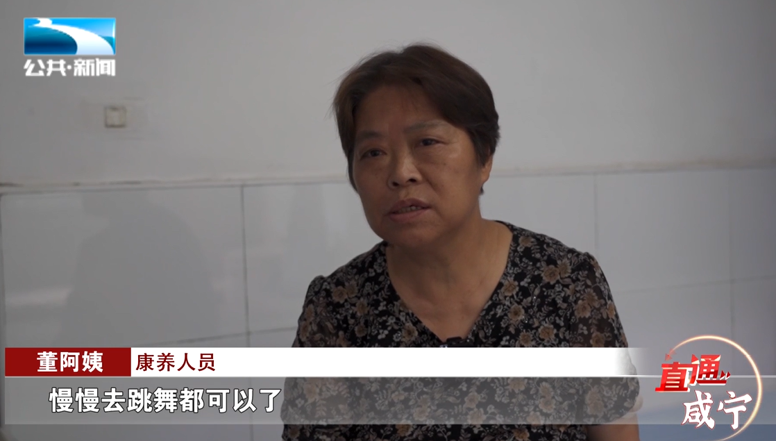 康养人员 董阿姨:“开年的时候过来的,走不了路,洗脸、洗澡都是我老头子帮我的,台阶一点点高,我都上不了,都是我老头子帮我推上去的,现在都可以活动了,自由去散步,慢慢去跳舞都可以了。”