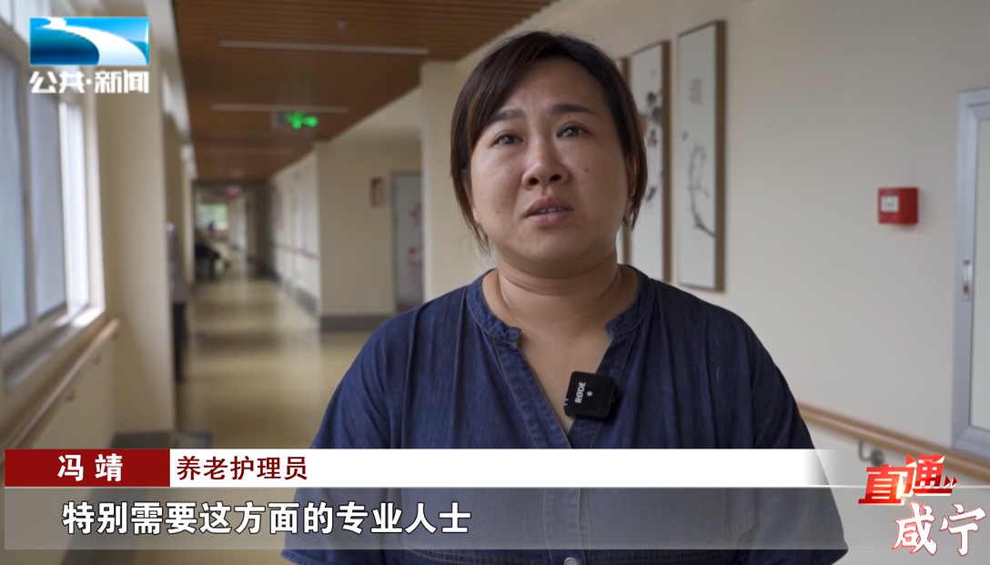 养老护理员 冯靖:“对老人这一方面的护理,不光是专业知识,更多的让我了解到社会的发展,老年(化)的趋势比较严重,特别需要这方面的专业人士。”