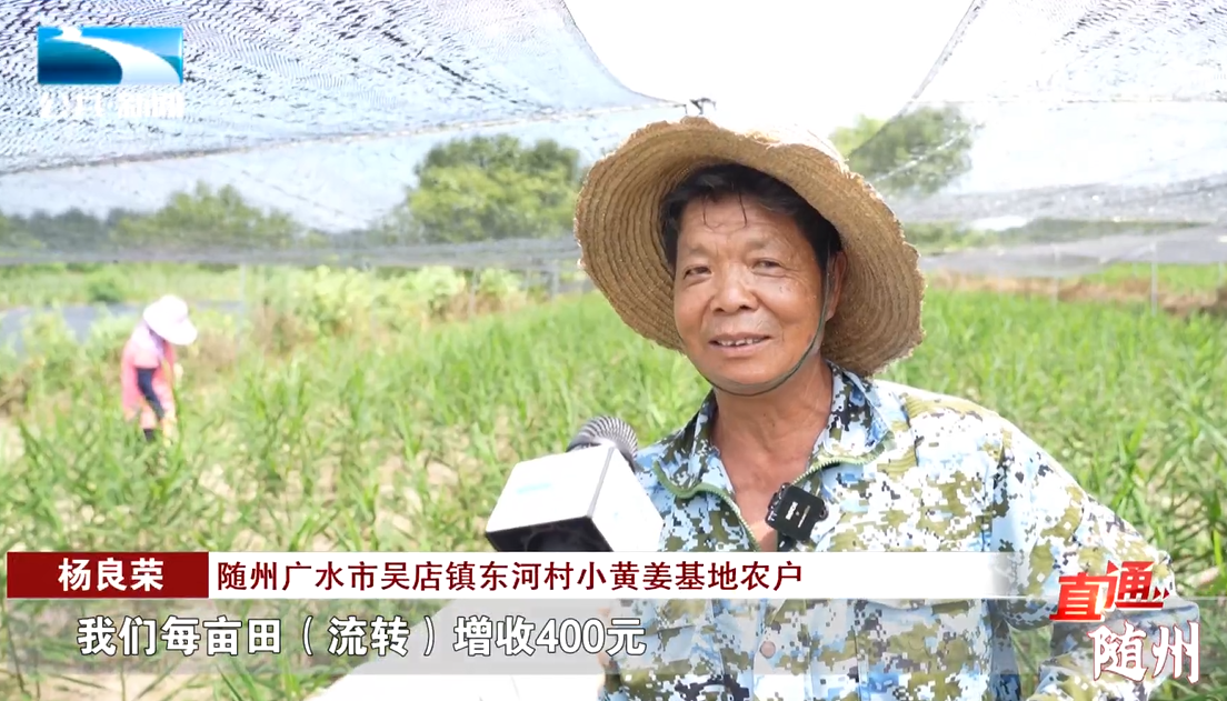 随州广水市吴店镇东河村小黄姜基地农户 杨良荣:“我们每亩田(流转)增收400元,两亩田搞800元,我们在这里锄草打药,每年能赚一万四五千块钱。”