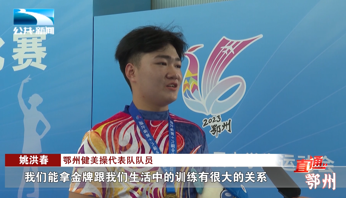 鄂州健美操代表队队员 姚洪春:“我们能拿金牌跟我们生活中的训练有很大的关系,虽然很累,虽然中途有想过放弃,但是我们还是坚持下来了,现在拿到金牌,感觉这一切都是值得的。”