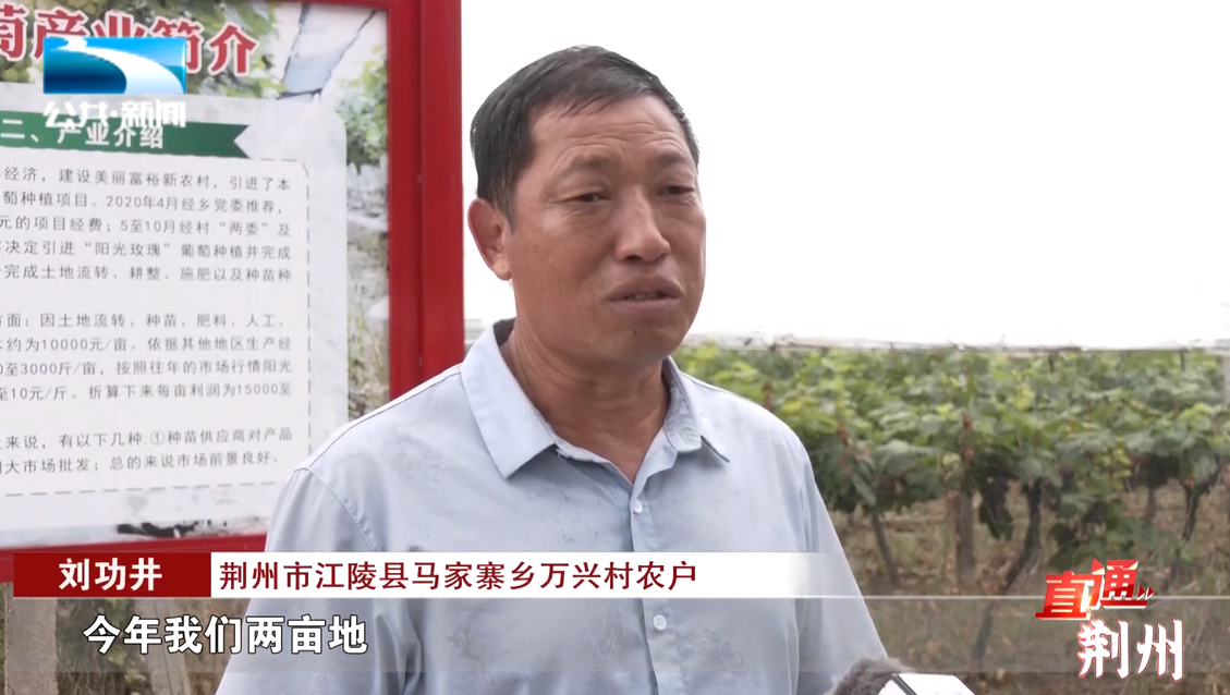 荆州市江陵县马家寨乡万兴村农户 刘功井:“今年我们两亩地,红地球一亩田大概是两万块钱左右,阳光玫瑰一亩田大概六七万块钱。”