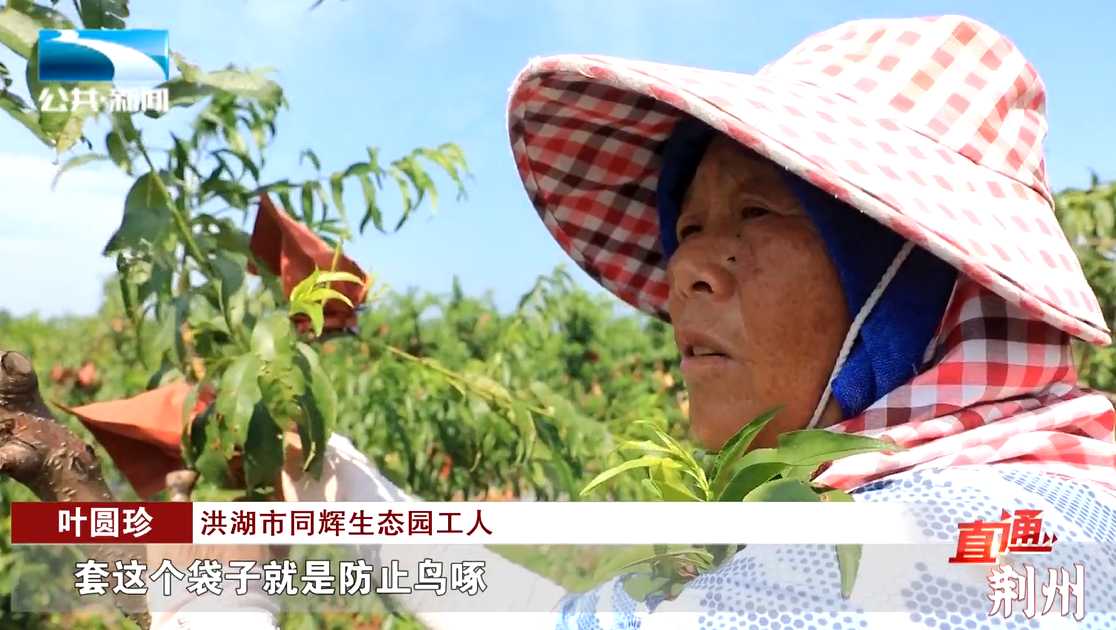 洪湖市同辉生态园工人 叶圆珍:“套这个袋子就是防止鸟啄,(保证)果子润色、鲜艳, 颜色好看又好吃。”