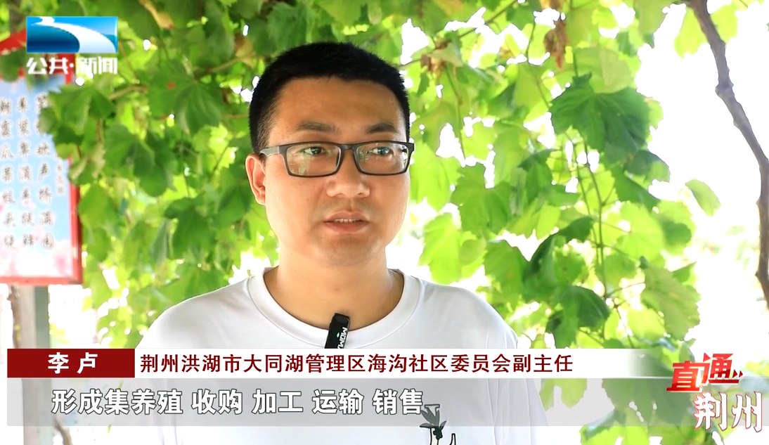 荆州洪湖市大同湖管理区海沟社区委员会副主任 李卢:“通过优质企业的带头示范效应,带动周边居民参与养殖,形成集养殖、收购、加工运输、销售为一体的养殖模式,助力乡村振兴。”