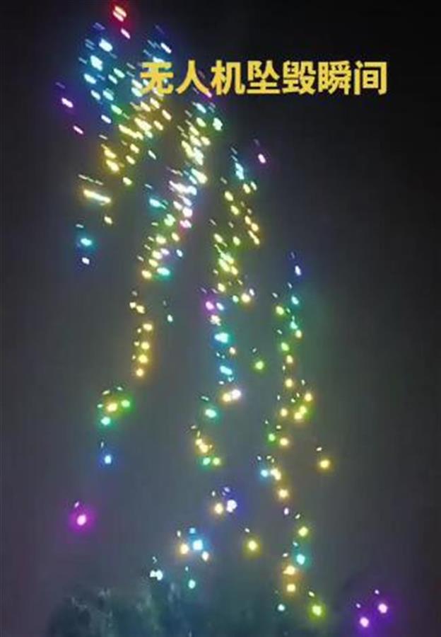 另一段现场视频中,五颜六色的无人机在空中摆出造型,可几秒钟后,几乎所有无人机同一时间从高空坠落,现场传出阵阵惊呼。