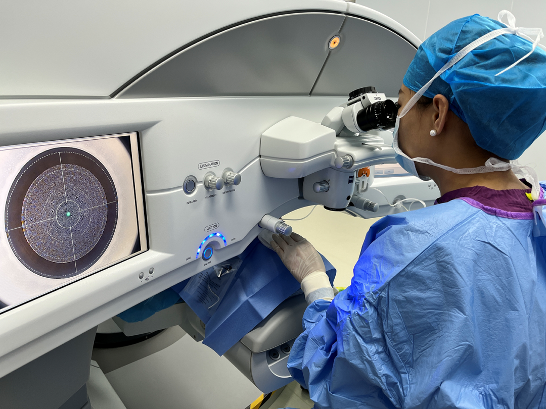 所以,当患者做飞秒手术和晶体植入手术时,成琼医生的手术操作时间超快!快到什么程度?从患者上手术台到下手术台,四分钟左右,而激光在角膜雕刻的时间,更是快到以秒为单位,大约20秒完成激光操作!