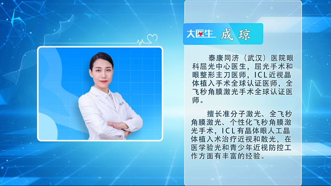 想认识这位很独特的成琼医生吗?请关注湖北综合频道《荆楚大医生》,看成琼医生说近视。