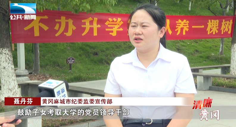 黄冈麻城市纪委监委宣传部 聂丹芬:“鼓励子女考取大学的党员领导干部,带头不办升学宴,认养一棵树,发挥示范引领作用,引导更多的干部群众,自觉不大操大办,倡导一种新的社会新风。”