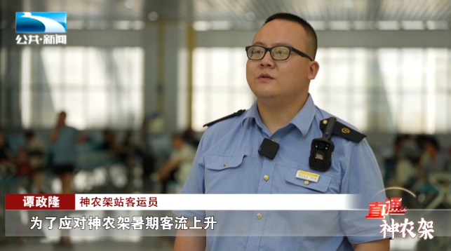 神农架站客运员 谭政隆:“为了应对神农架暑期客流上升,我们淡季班次在40趟左右,暑期新增4趟,在周末又开通了2趟班次,暑期以来进出站平均(每天)达到850余人,最多的一天有1500余人。”