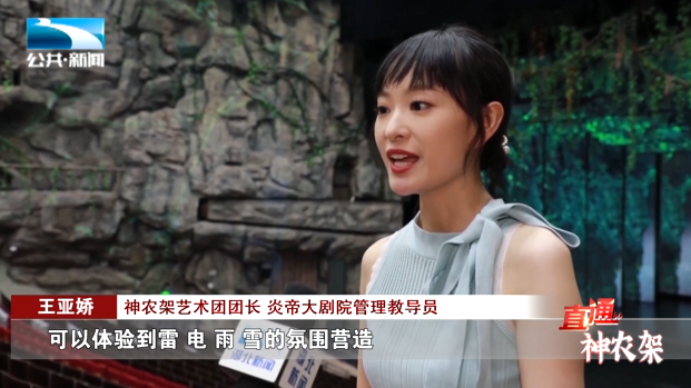神农架艺术团团长、炎帝大剧院管理教导员 王亚娇:“采用了270度的观影效果,可以体验到雷电雨雪的氛围营造,还有干湿舞台分离,瀑布下来的时候,坐在前排的观众有最直观最真实的感受。”