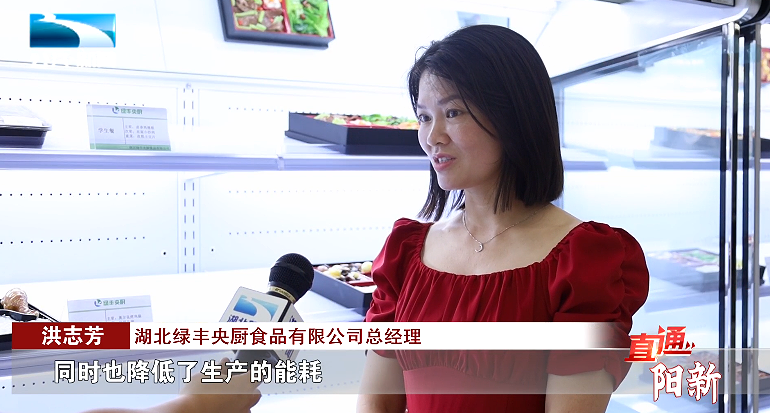湖北绿丰央厨食品有限公司总经理 洪志芳:“降低了我们设备采购的成本,提升了我们菜品品质和口感,也提升了我们生产的效率,同时也降低了生产的能耗,通过设备的这些优势,也使我们绿丰央厨,在预制菜生产上具有更大的竞争力。”