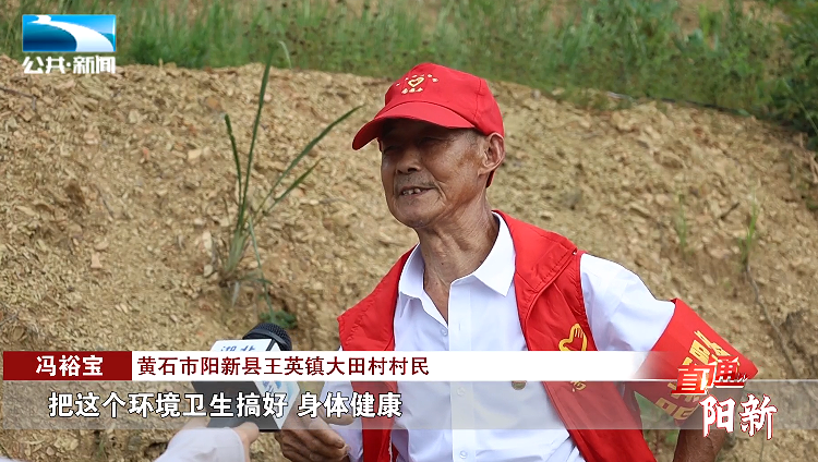 黄石市阳新县王英镇大田村村民 冯裕宝:“把这个环境卫生搞好,身体健康,为了下一代生活美好。”