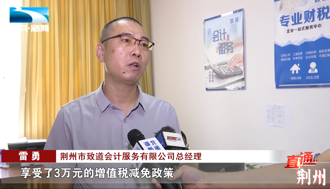 荆州市致道会计服务有限公司总经理 雷勇:“享受了3万元的增值税减免政策,以及企业所得税的1.5万元,还有其它各项赋税也有5000块钱左右,加起来合计差不多5万块,对我们这种小微企业来说,比例已经是非常高了。”