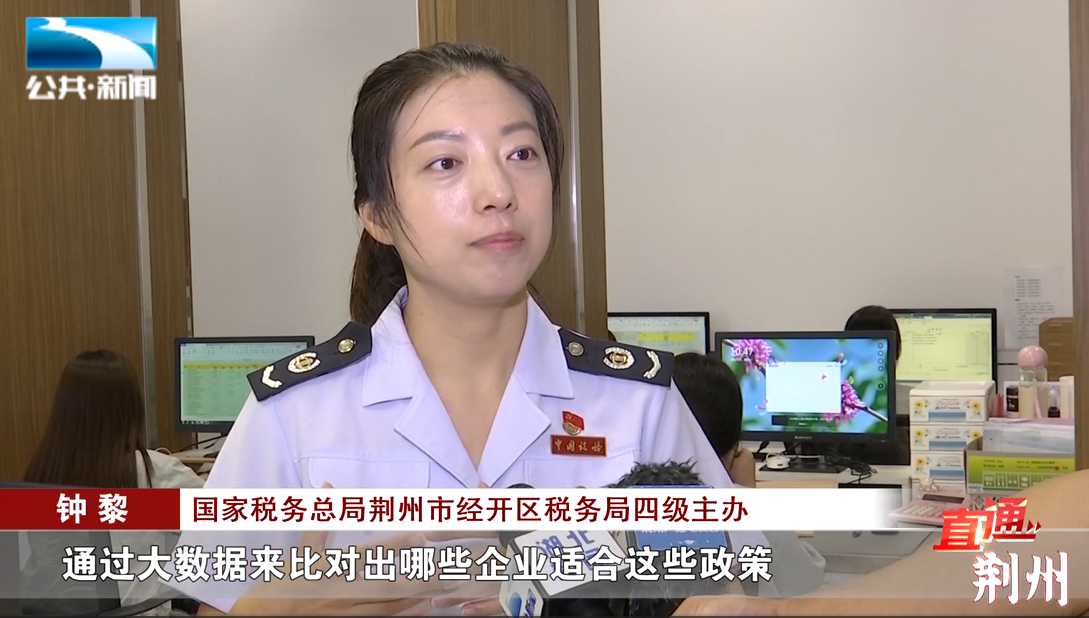 国家税务总局荆州市经开区税务局四级主办 钟黎:“通过大数据来比对出哪些企业适合这些政策,然后主动上门,为这些企业送上我们的政策大礼包。”