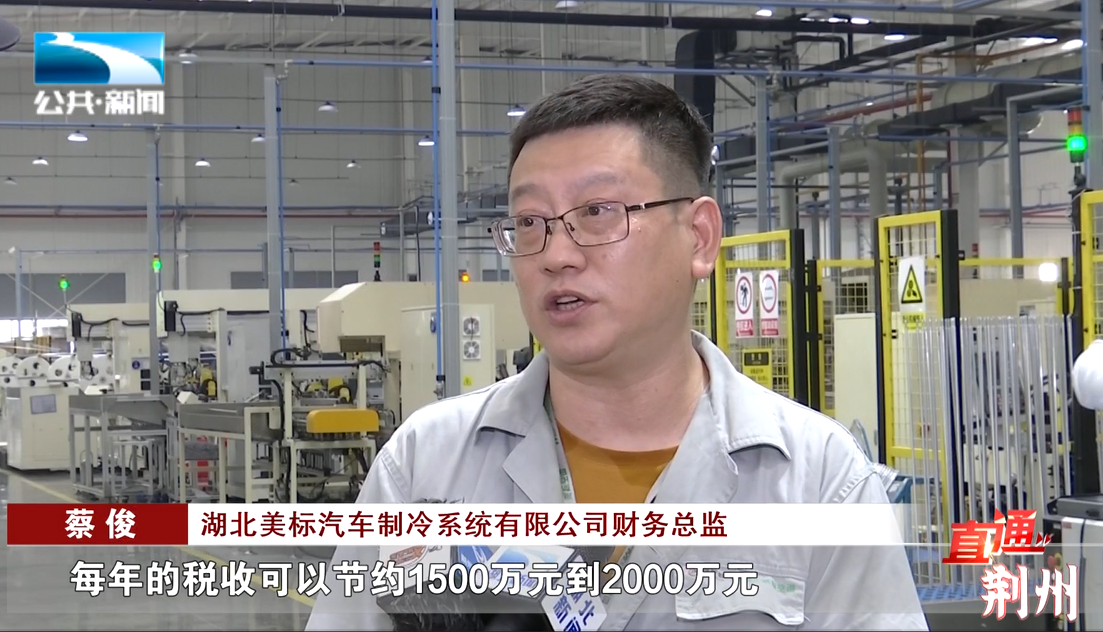 湖北美标汽车制冷系统有限公司财务总监 蔡俊:“每年的税收可以节约1500万元到2000万元,这个1500到2000万元的节约我可以持续投资,政府也会对我的投资给予技术奖励,这个是真金白银的减少成本。”