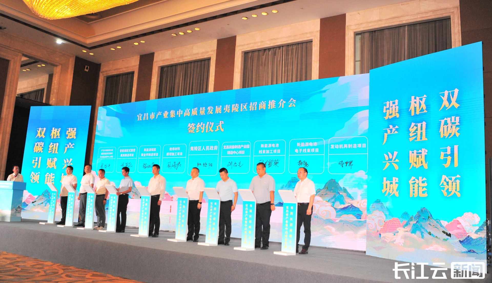 8月27日,湖北宜昌产业集中高质量发展夷陵区招商推介会成功举办,现场签约项目24个,总投资122.05亿元,来自全国各地100余家客商及楚能公司特邀嘉宾参加活动。推介会从得天独厚的区位优势、位居全省前列的营商环境、坚实雄厚的产业基础、包容开放的人文环境等方面多维度、全方位、深层次地向企业代表展示了夷陵风采和潜力。