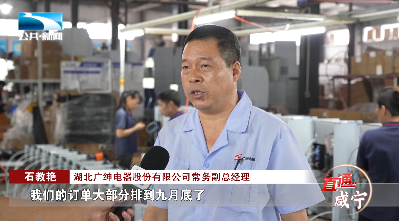 湖北广绅电器股份有限公司常务副总经理 石教艳:“我们的订单大部分排到九月底了,有个别的已经排到十月份,到目前为止产值已经达到七千多万元,估计到年底我们产值有信心突破过亿元。”