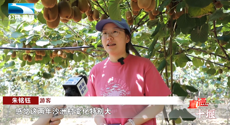 游客 朱铭钰:“感觉这两年沙洲村变化特别大,空气变得好了,水也变得清了,每年我都会跟着我的朋友们,一起来摘猕猴桃吃。”