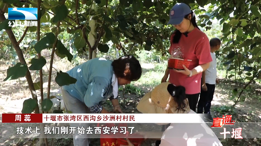 十堰市张湾区西沟乡沙洲村村民 周蕊:“技术上,我们刚开始去西安学习了,又通过乡里培训,加上乡里又建立了一个技术培训指导队,经常下乡来培训,修剪、疏花、疏果、绑枝,所以说我们种植猕猴桃真是信心满满。”