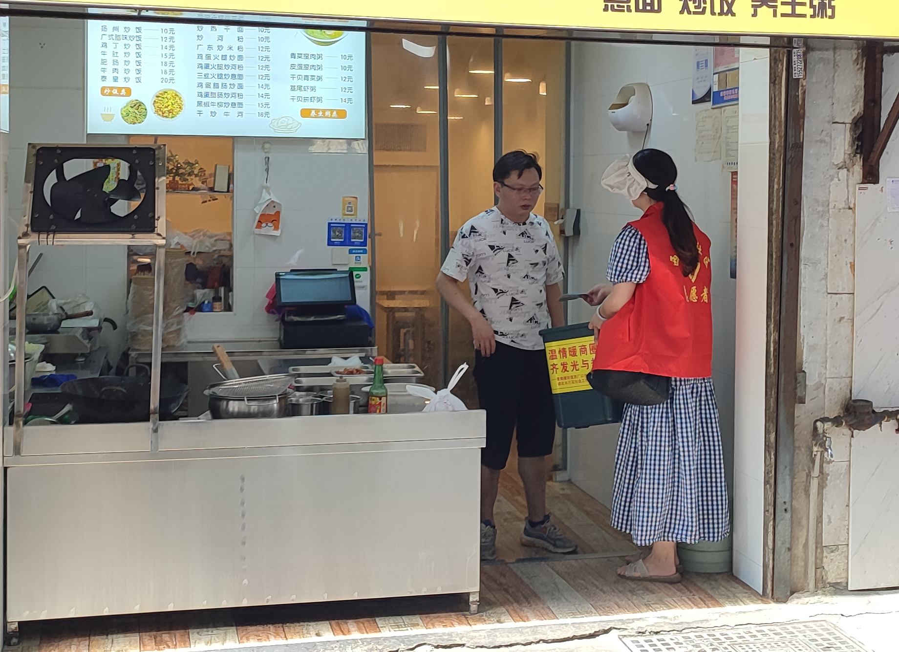 活动中,志愿者通过上门宣传、发放宣传册、为辖区商户和新就业群体讲解《优化营商环境条例》和分发环保垃圾桶等形式,引导大家爱护环境,为美化营商环境共同出力。志愿者耐心询问商户经营情况,认真倾听商户的呼声和诉求,搜集大家对优化营商环境的意见和建议;并详细介绍了《优化营商环境条例》制定的重要意义,灵活就业人员社保补贴等政策,仔细查看商户的营业执照、食品从业人员健康证、店内环境卫生及消防设施设备等情况,并督促商户不在店外乱堆乱放、占道经营,落实好门前五包责任,并动员商户和群众参与到优化营商环境工作中来,形成上下合力,打造亲商、爱商、尊商、安商、护商的浓厚氛围。