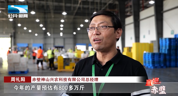 赤壁神山兴农科技有限公司总经理 周礼阳:“今年的产量预估有800多万斤,这条分拣线每小时有10吨的分拣能力,保证我们入库的每一粒果子达到高品质,下一步我们会在深加工这块要重点去打造,做NFC果汁,高品质的优质果汁,拉长产业链,提高经济效益。”