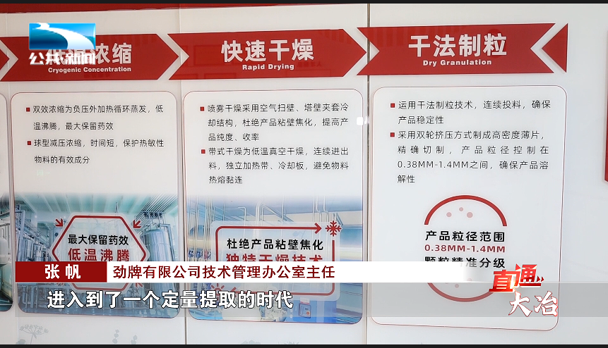 劲牌有限公司技术管理办公室主任 张帆:“将我们之前中药模糊化的提取进入到了一个定量提取的时代,实现了我们产品的精准品质控制。”