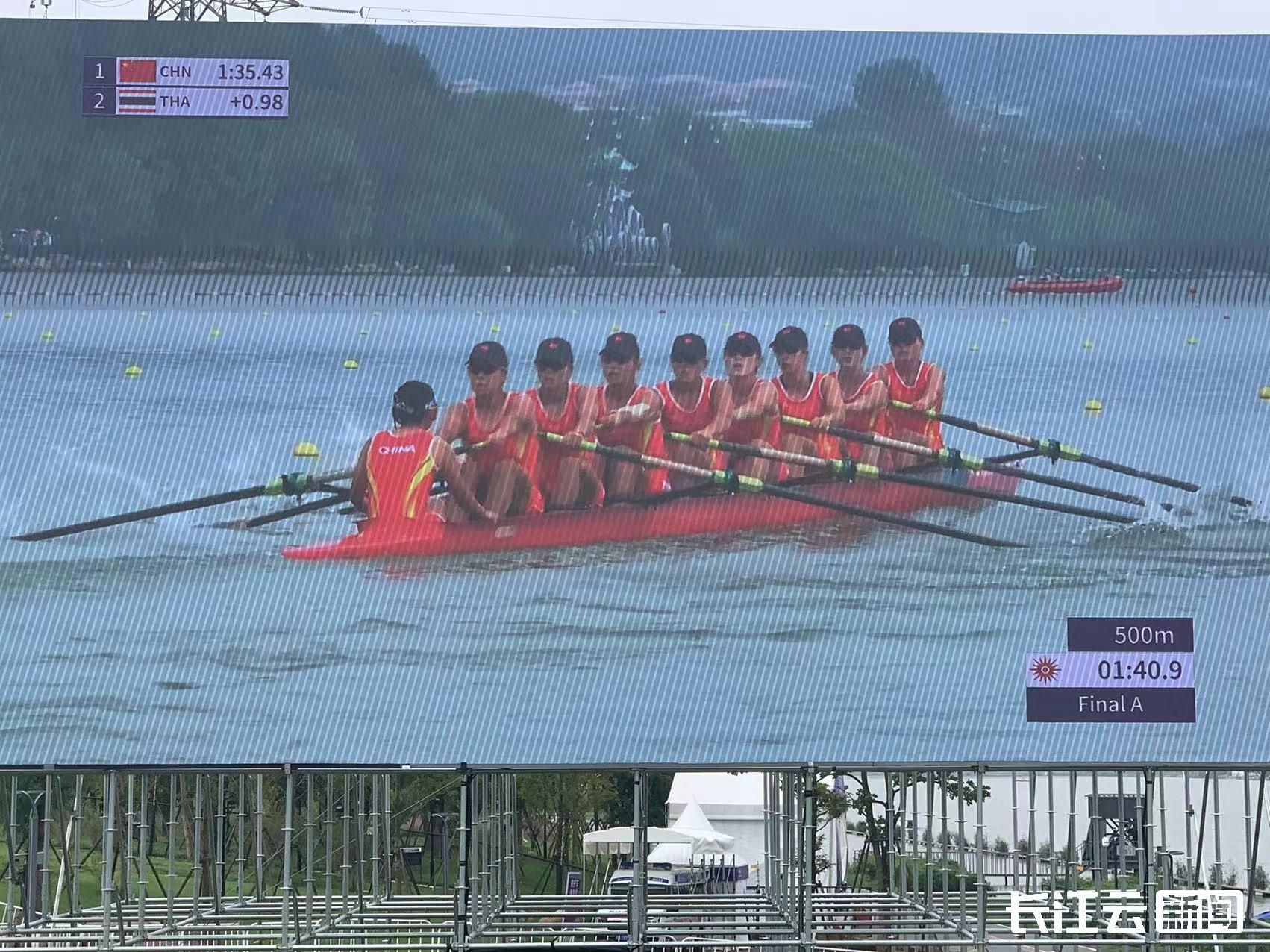 今天(9月25日)杭州亚运会水上项目进入第二决赛日。在刚刚结束的赛艇女子八人单桨有舵手项目决赛中,来自湖北的王子凤和队友通力配合,获得冠军!