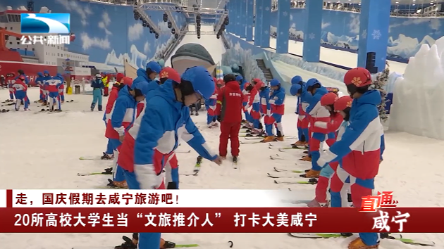 在际华冰雪·香城滑雪馆内,大学生们领取滑雪设备进入场地,经过滑雪教练的入门培训后,迫不及待地走上雪道大显身手。在初级道上,大学生们踩着雪板从雪道风驰电掣而下,身姿轻盈,一个急停,滑雪板溅起雪花,十分潇洒。