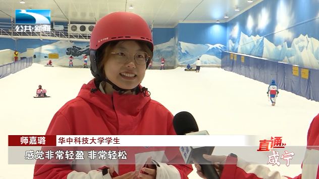 华中科技大学学生 师嘉璐:“第一次来滑雪,从上面滑下来的时候,感觉非常轻盈、非常轻松,也没有想象中的那么紧张,下次还会再来的,非常好玩。”