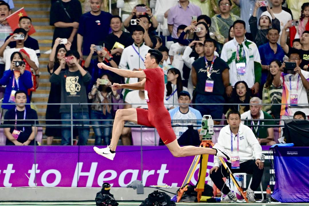 10月3日晚,杭州亚运会田径比赛继续在杭州奥体中心体育场进行。在男子三级跳远决赛中,东京奥运会银牌得主、中国队选手朱亚明以17米13的成绩夺得冠军。另一名中国队选手方耀庆获得银牌。
