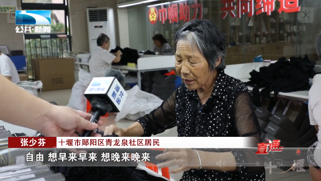 十堰市郧阳区青龙泉社区居民 张少芬:“自由,想早来早来,想晚来晚来,适合我们老年人,挣点钱,买个菜。”