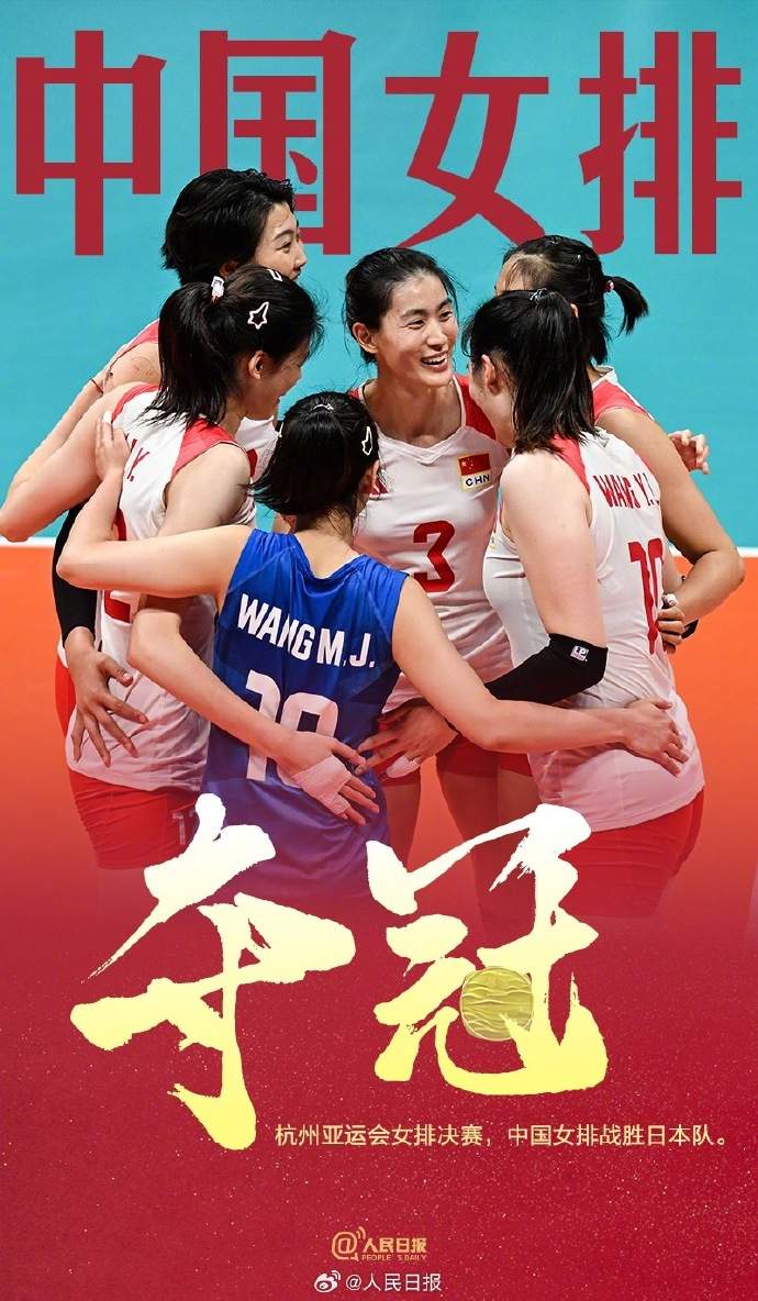 10月7日,在杭州亚运会女排决赛中,中国女排3比0战胜日本队,以六战全胜的战绩成功卫冕,这也是中国女排队史第9枚亚运金牌。祝贺姑娘们!