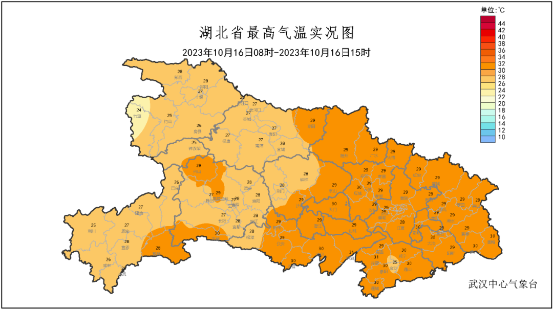 最高气温:鄂西北22~25℃;其他地区27~30℃