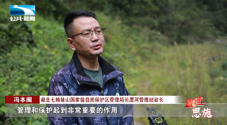 湖北七姊妹山国家级自然保护区管理局总工程师 刘昌勇:“(我们)坚持绿水青山就是金山银山理念,切实守住七姊妹山生物多样性资源,守住人类重要基因库,同时加强社区经济发展,引导社区产业发展,为恩施州‘两山’实践创新示范区,做出保护区的贡献。”