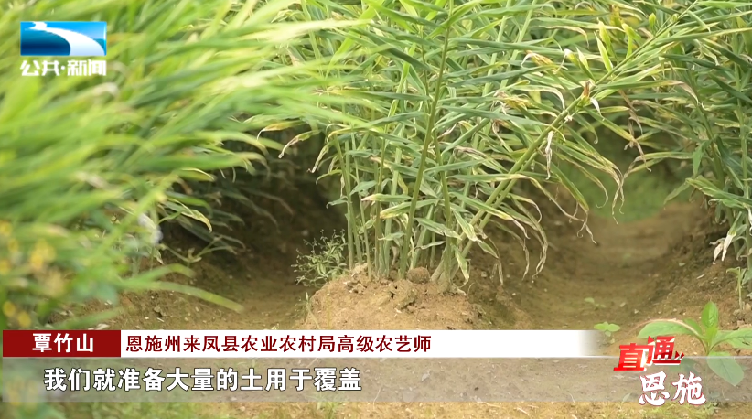 恩施州来凤县农业农村局高级农艺师 覃竹山:“生姜它是向上生长的,在向上生长的过程中它就突破土层,而且它是喜阴的作物,根据它的特性,我们就准备大量的土用于覆盖,地下也形成一个宽松的生长环境,所以越到上面的姜,它就越嫩。”