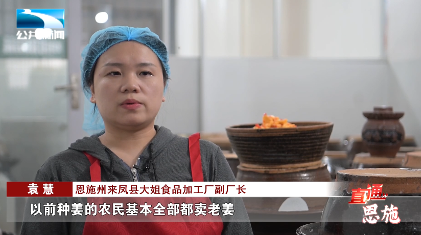 恩施州来凤县大姐食品加工厂副厂长 袁慧:“一家一户地去请教学习,一遍又一遍地总结,我就把每家每户都有的特产变成商品销售出去,以前种姜的农民基本全部都卖老姜,现在大家更愿意去卖嫩姜。”