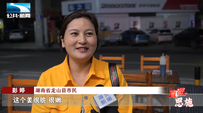 湖南省龙山县市民 彭婷:“这个姜很脆,很嫩,我们吃宵夜喝酒了都喜欢吃这个。”